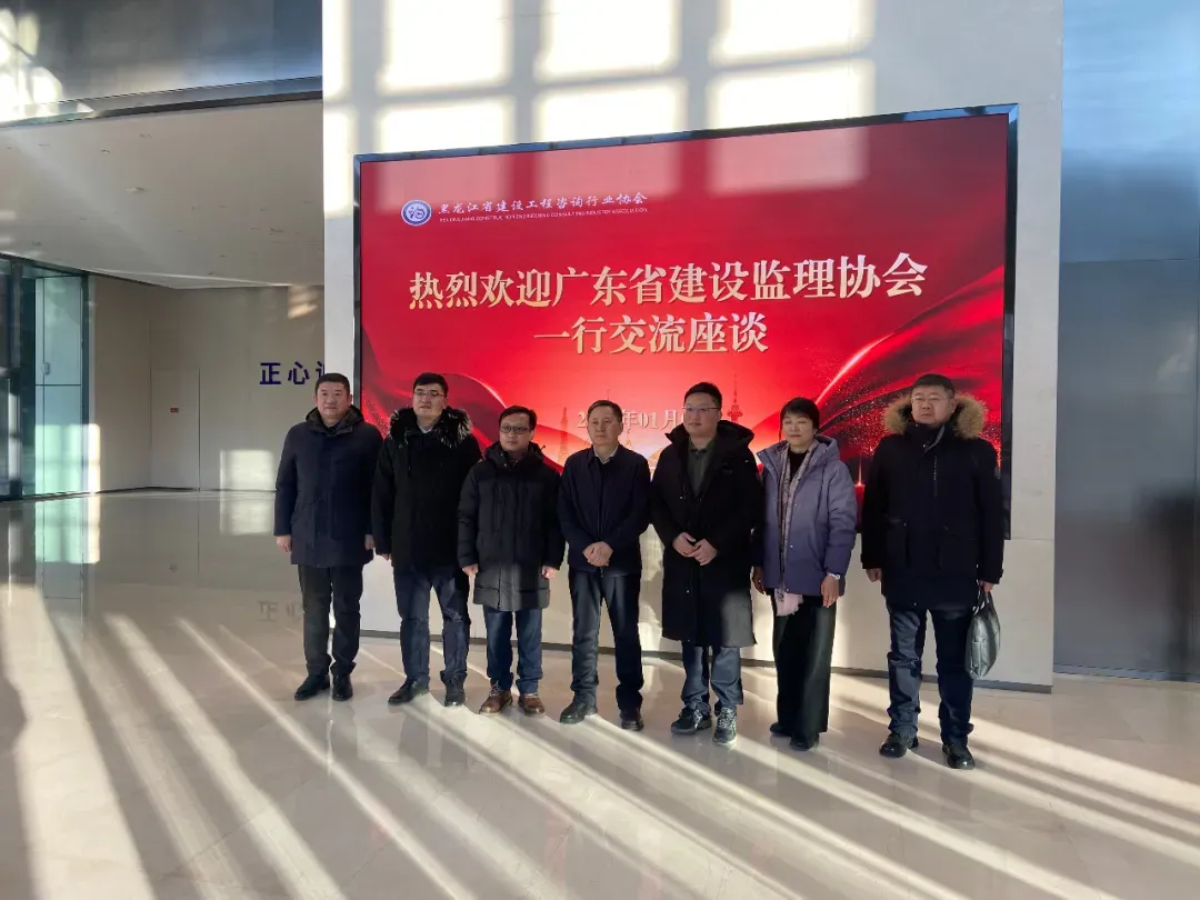 1月8日,广东省建设监理协会会长史俊沛、秘书长黄鸿钦、党支部书记兼副秘书长许冰纯一行到访黑龙江省建设工程咨询行业协会(以下称“省协会”)交流座谈,并到省协会副会长单位——黑龙江省设计集团有限公司进行调研。黑龙江省建设工程咨询行业协会会长陈冬梅、副会长张文宝、副会长王海鹏、副会长王鑫、副会长于志国、秘书长刘鹏及协会秘书处工作人员参加座谈调研。此次会议旨在加强两地建设工程咨询行业的交流与合作,互相学习在监理行业管理方面的先进经验,深化两地协会间、监理行业间的交流与合作,共同探讨推动行业发展的新思路与新举措。