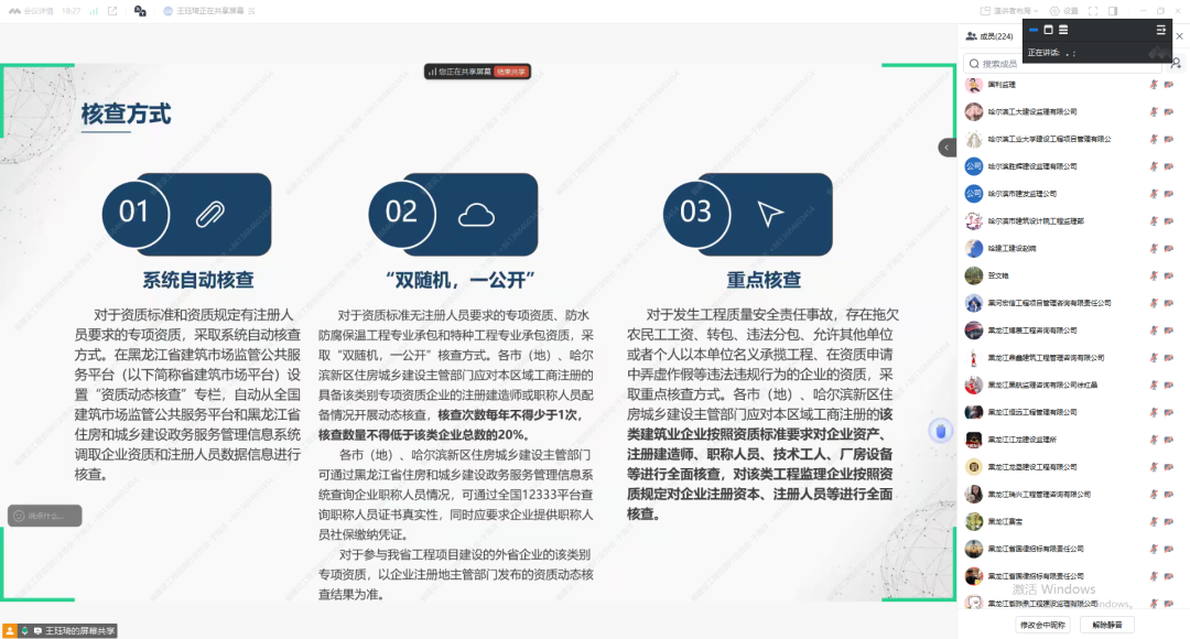 3月28日,为落实《黑龙江省住房和城乡建设厅关于加强建筑业和工程监理企业资质动态核查工作的通知》,省住建厅建管处组织召开全省建筑业和工程监理企业资质动态核查工作政策解读视频会议。省协会组织招标企业、监理企业约160家,参加本次视频会议。